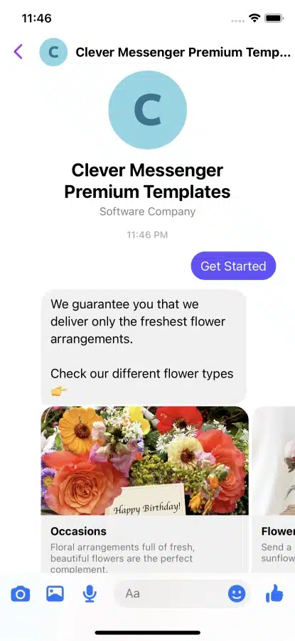 This premium chatbot flow called the Flower's Menu Flow, allows users to browse through different flower arrangements available for ordering. Sellers can put in every arrangement for different occasions and put in actual photos of their flower arrangements. You import the Flower's Menu Flow from the importer on the Flow Composer inside Clepher.