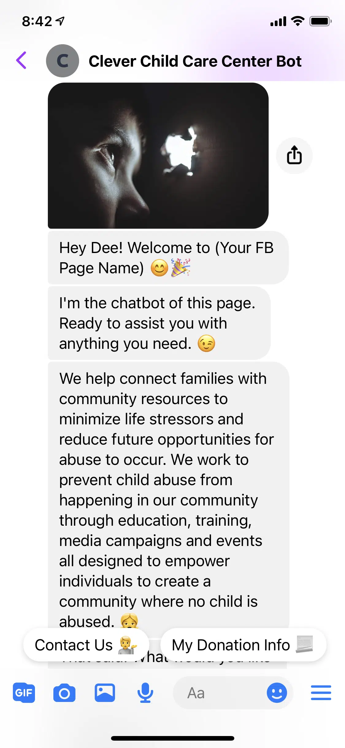 Use this FREE Child Care Center Template to install a chatbot on your Facebook Page.