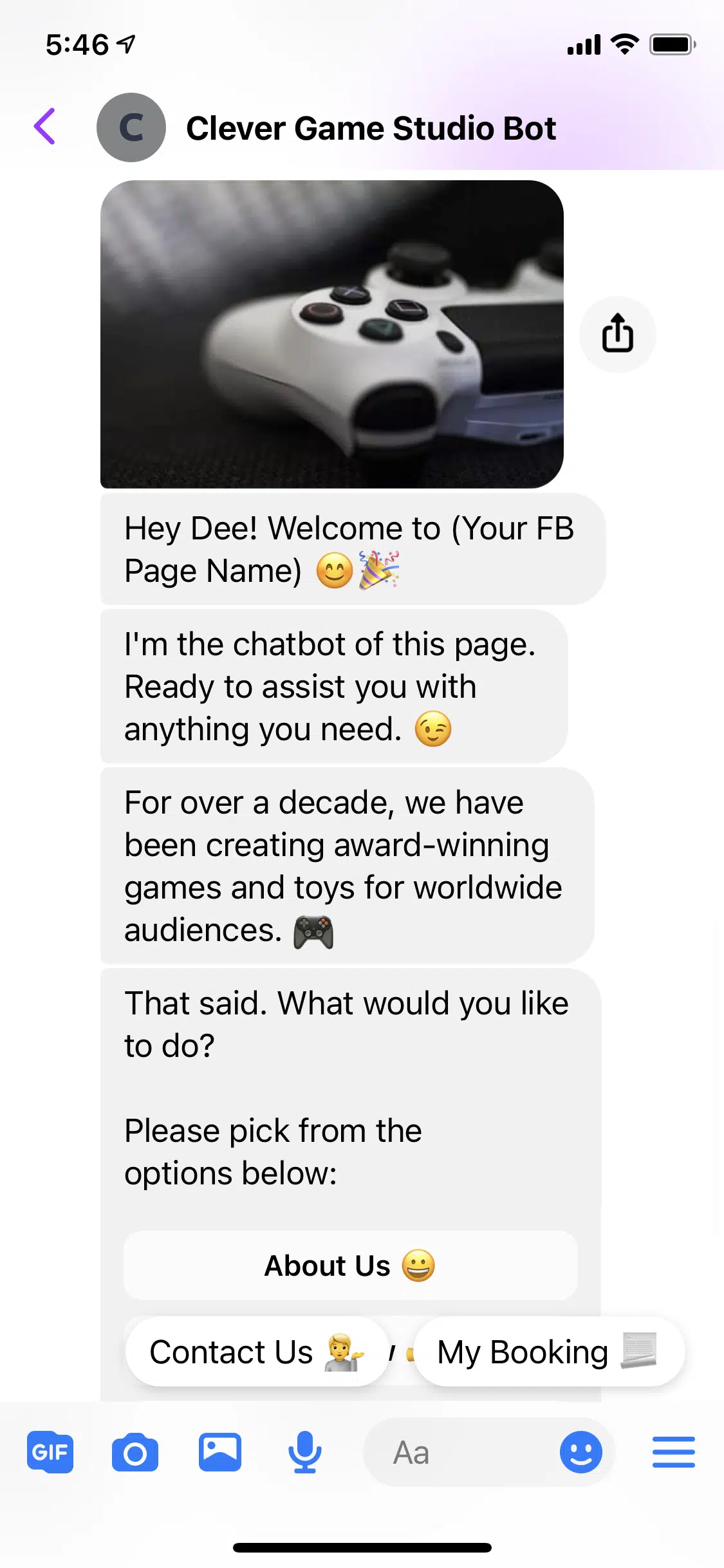Use this FREE Game Studio Template to install a chatbot on your Facebook Page.