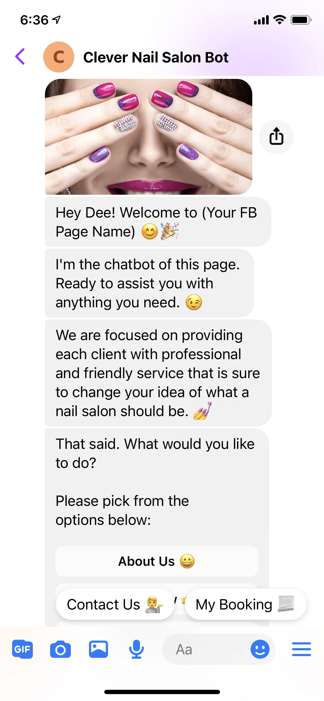 Use this FREE Nail SalonTemplate to install a chatbot on your Facebook Page.