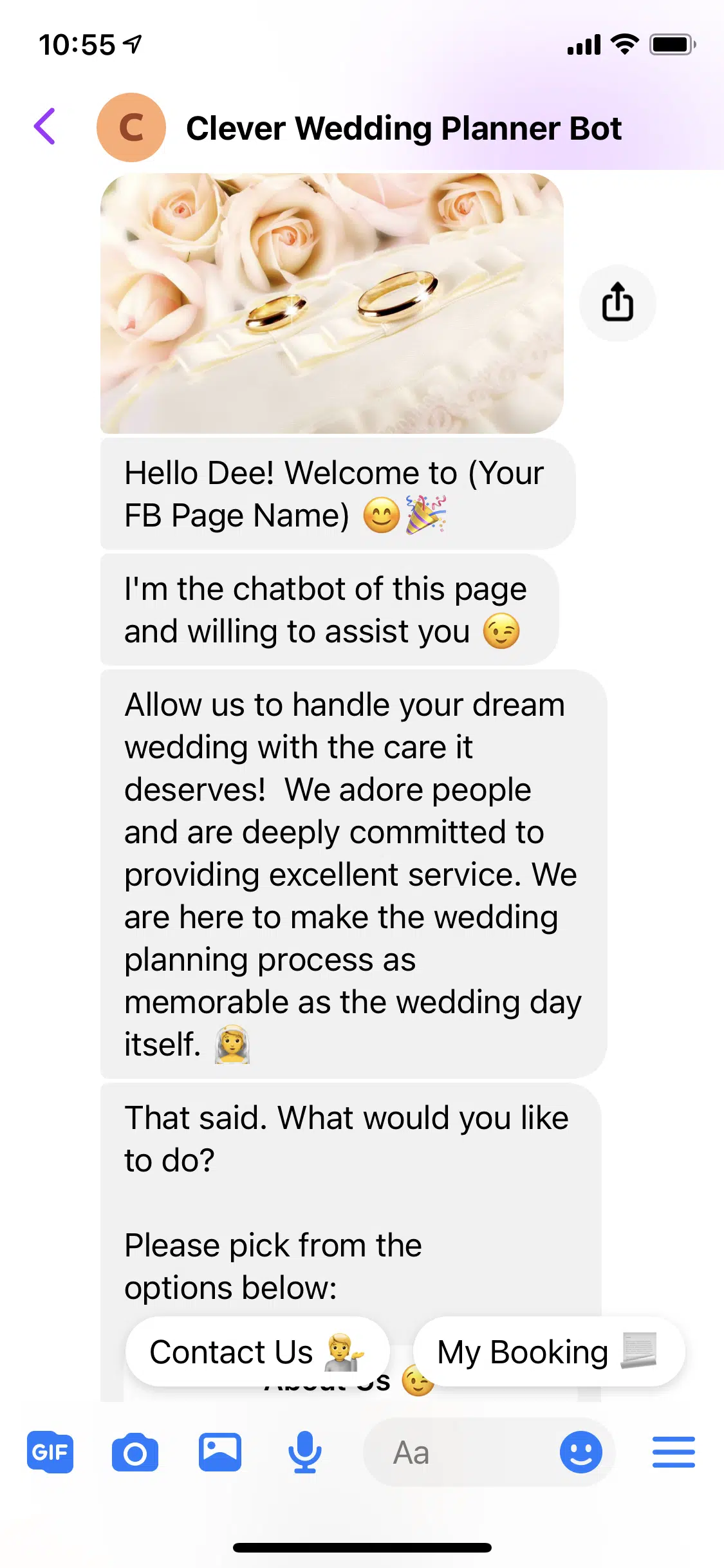 Use this FREE Wedding Planner Template to install a chatbot on your Facebook Page.