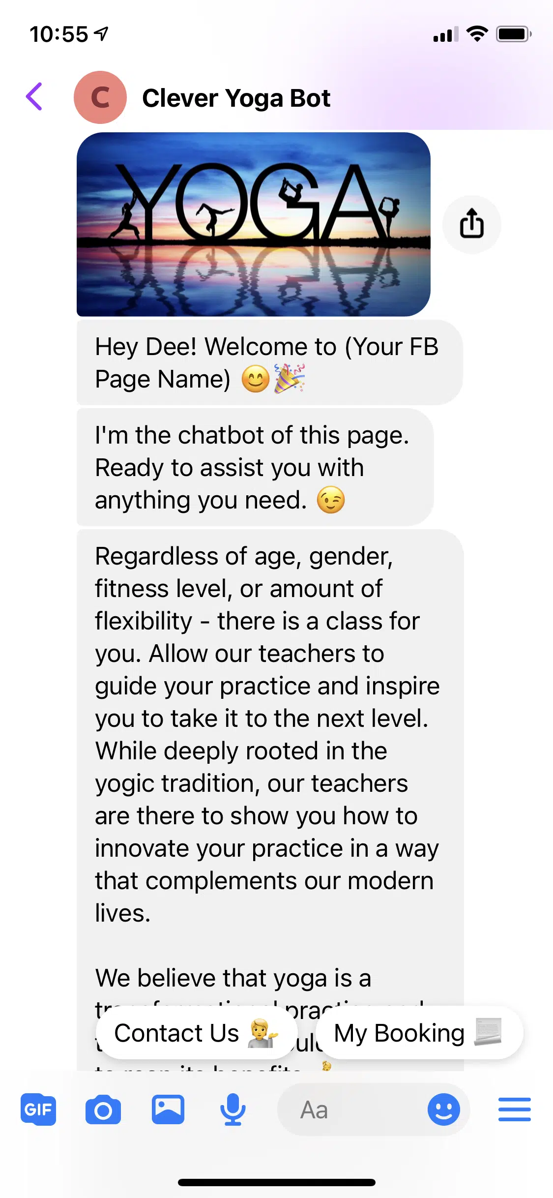 Use this FREE Yoga Template to install a chatbot on your Facebook Page.